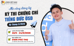 DWN – “Deutsch, Warum Nicht?” trong tiếng Việt có nghĩa là “Tiếng Đức, tại sao không?”. Đây như là một lời thách thức, kích thích người học tìm hiểu về ngôn ngữ Đức. Việc học một ngoại ngữ mới chưa bao giờ là điều đơn giản và tiếng Đức cũng không ngoại lệ. THẾ NHƯNG, với đội ngũ giáo viên có trình độ chuyên môn cao, nghiệp vụ sư phạm và đặc biệt có kinh nghiệm thực tế tại Đức, DWN Việt Nam đã nghiên cứu, thiết kế thành công các bài giảng phù hợp, áp dụng cách truyền đạt sinh động, dễ hiểu cho các đối tượng khác nhau, truyền cảm hứng và tình yêu với tiếng Đức và văn hóa Đức cho học viên.
